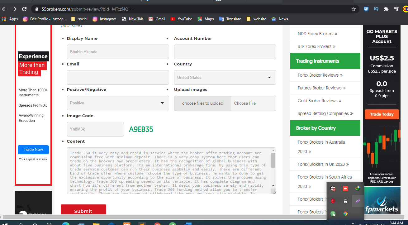Trade360 provides quality trading conditions via its Australia and Cyprus entities (read more about Australia headquartered broker FP Markets), with good costs and trading options like social trading. Account opening is easy and smooth.