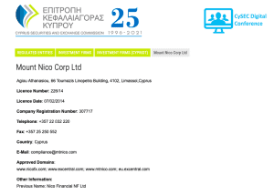 The eXcentral Brand is authorised and regulated across a variety of jurisdictions. eXcentral Eu is a brand owned by Mount Nico Corp Ltd, a Cyprus Investment Firm, authorized and regulated by the Cyprus Securities and Exchange Commission with CIF license number 226/14.