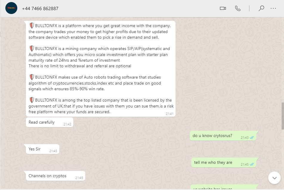 Good day, I have been approached by this company called BulltonFX who claims they are registered and regulated in the UK. The also have a certificate on their website, this stated Bull Trading Limited with a number 8335287. My research seems to direct me towards a scam / fraud company. Will you be able to confirm any of the above?