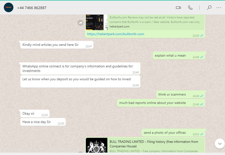 The certificate of incorporation (Bull Trading Ltd) on this website is mine, and is being illegally used to give these scammers credibility, the site has been reported to the authorities and companies house, and we are in the process of having BulltonFX.com shut down. It is a lengthy process, but in the meantime I wanted to warn everyone of what these people are up to.