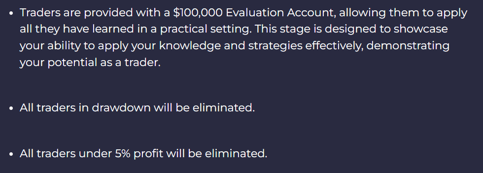 A crucial aspect of our review of Traders4Traders focuses on the structure of their evaluation challenge and the prerequisites for participating in their trading challenge. This includes understanding the type of examination required to secure a funded trading account and become a proprietary trader.