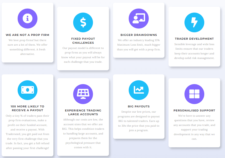 Traderseed is a trading platform founded in 2019, designed to offer unique and innovative trading programs aimed at helping aspiring traders develop the skills required for success with proprietary trading firms. Unlike traditional prop firms, TraderSeed presents a fixed-payout model, where traders know in advance what their payout will be for each challenge they undertake.