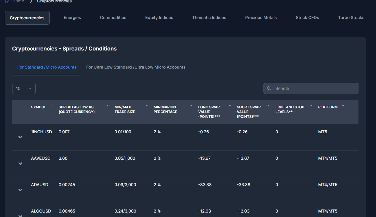 📉 Trading Instruments1,000+ products Stocks, CFDs, Forex, Commodities, Portfolios, Metals, Thematic Indices, Turbo Stocks, Cryptocurrencies (not available to all Entities of the Group)